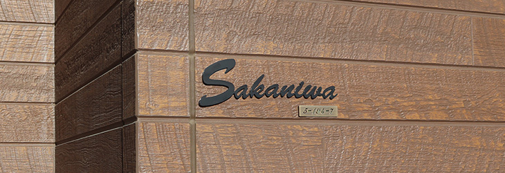 切り文字のテクノサインなどの下に、番地プレートをプラス。表札まわりのアクセントとして、グレード感を演出できます。